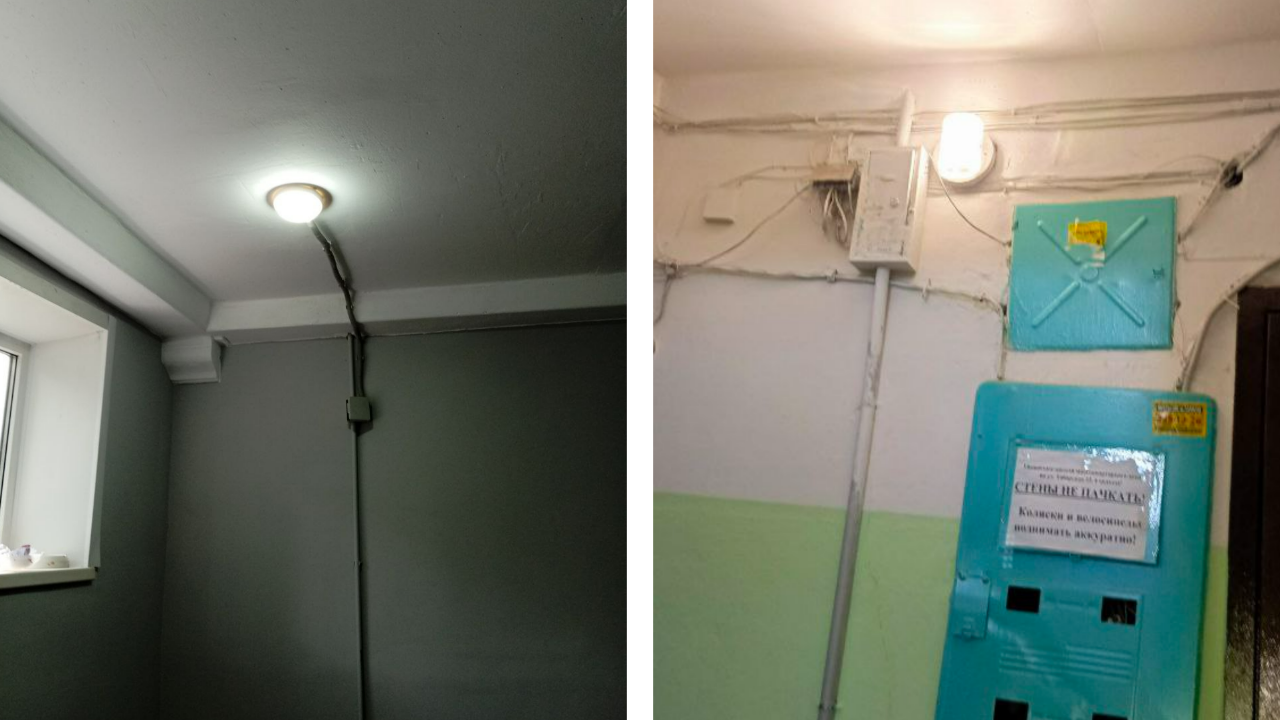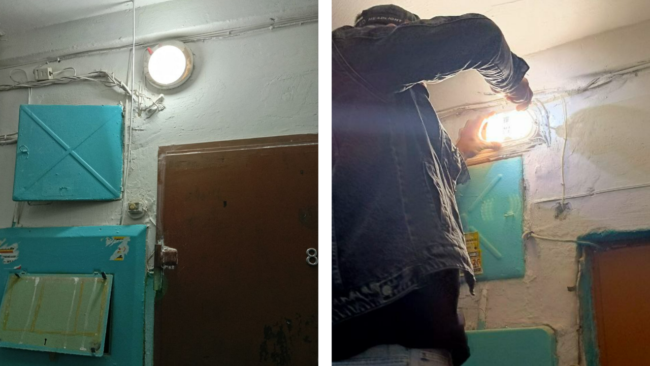 К началу сентября в подъездах нескольких домов перегорели светильники. Мы собрали заявки от жителей и составили программу замены. Затем закупили новые изделия и отправились восстанавливать освещение.