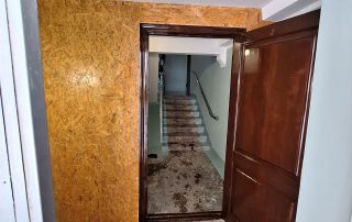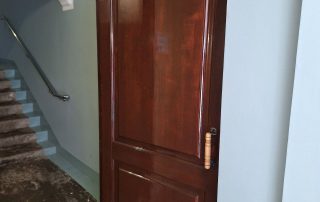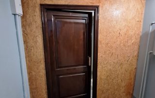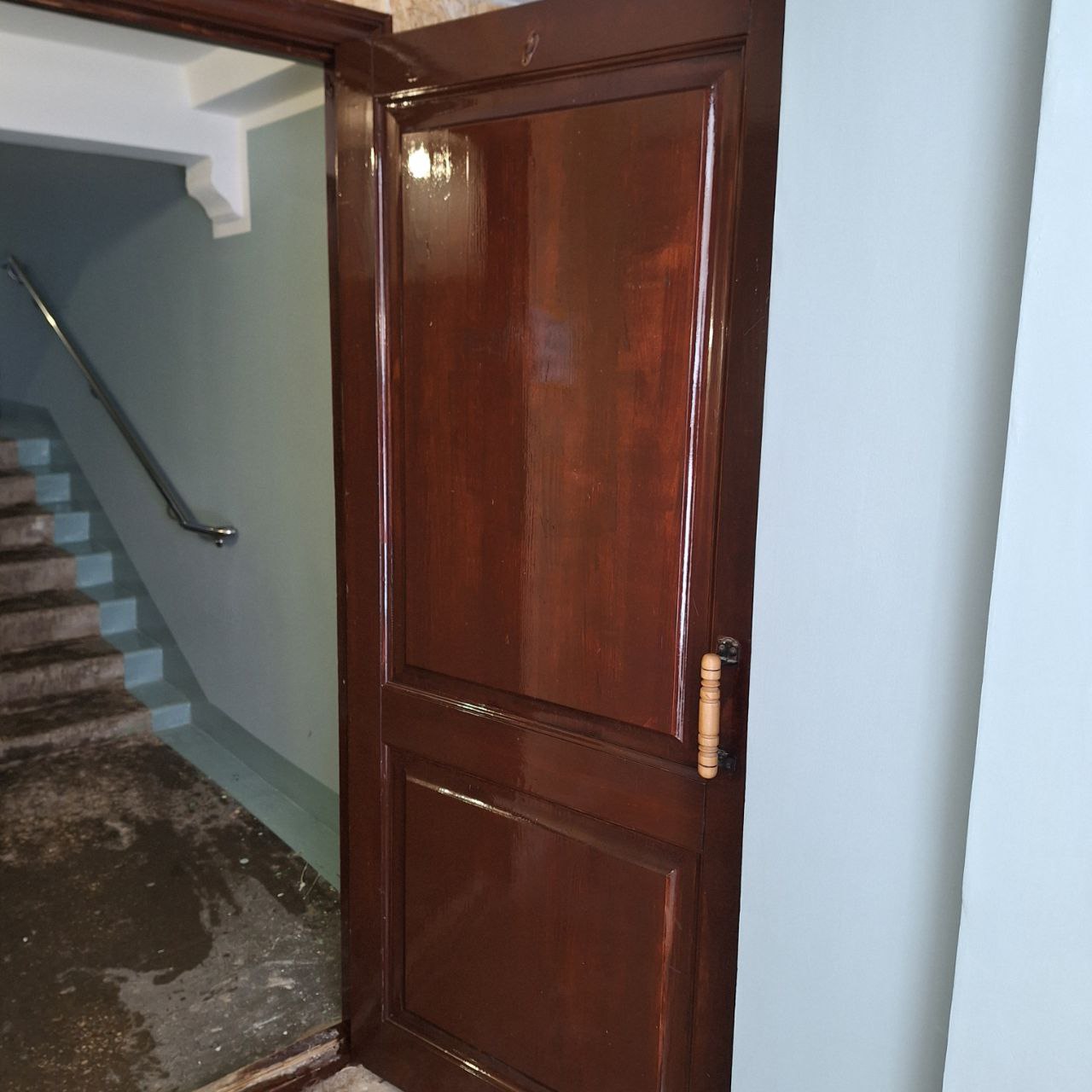 Дверь плотно закрывается и хорошо удерживает тепло внутри подъезда. Чтобы дверь дольше служила и не рассыхалась от перепадов температуры, ее покрыли специальным лаком.