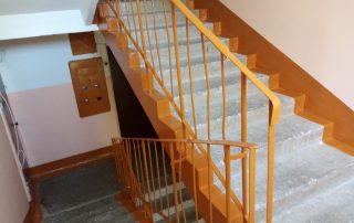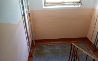 Мы привели в порядок пятнистые стены, потолки с разводами и освежили цвет перил и ящиков.