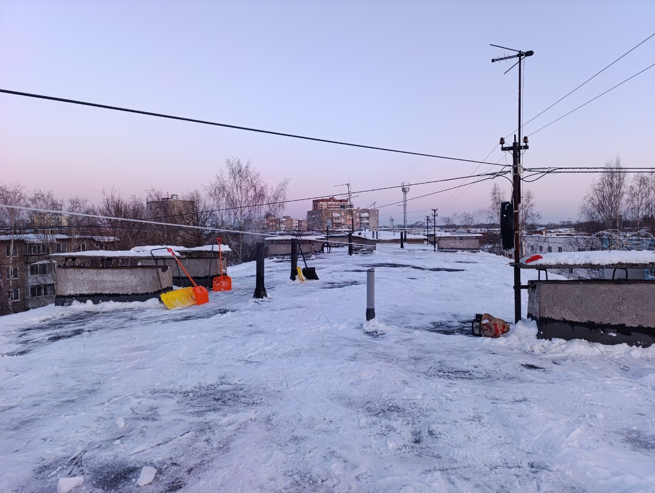 На прошлой неделе чистили снежные свесы и наледь на крышах домов по адресам: