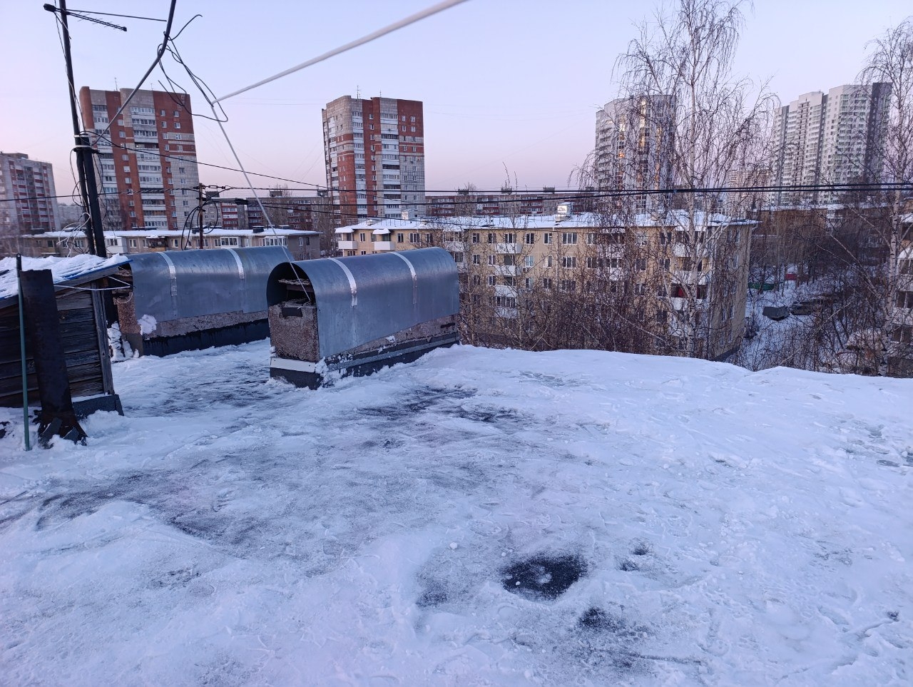 На прошлой неделе полностью вычистили крышу на ул. Тбилисской, 7. Убрали снег, наледь, свисающие сосульки.