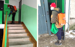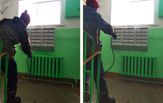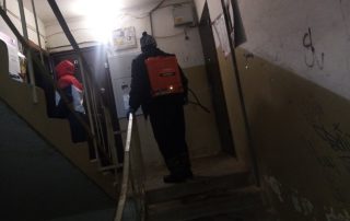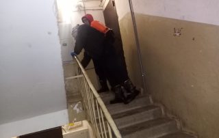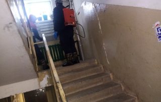 И снова на повестке дня санитарная обработка. На этот раз проводили дезинфекцию 3 подъезда на ул. Солдатова 2. Обработка проведена "по медицинским показаниям" – в подъезде есть заболевшие. Обработали все поверхности, которых могут касаться жители, идя по подъезду: двери, перила,
