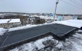 Восстановили герметичность кровельного полотна – использовали для этого рулонный наплавляемый материал. Для лучшей гидроизоляции стыки покрыли кровельной мастикой.