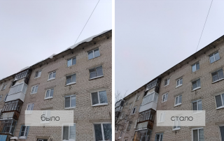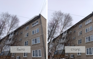 Сразу после первого в этом году снегопада, почистили крыши от снега, сосулек и снежных шапок. Привели в порядок кровли по нескольким адресам.