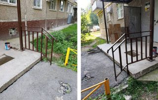 Поручень металлический, антивандальный. Он изготовлен из сплава, который устойчив к коррозии и перепадам температур. Надеемся, что служить жителям он будет долгие годы.