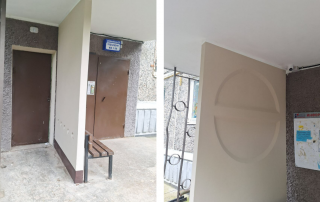 Покрыли бетонные и оштукатуренные поверхности фасадной краской. Она устойчива к перепадам температур, дождю, снегу и ветру.